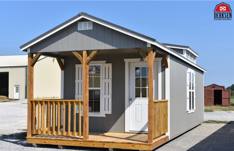 The Cabin comes standard with a 4′ deep front porch with rails. Side Cabins come standard with a 4′ porch with variable placement options. Three 2 x 3 windows standard. One 9-light, 36″ pre-hung door. The Cabin comes with plenty of head room with standard 8 ft walls (exterior measurement).